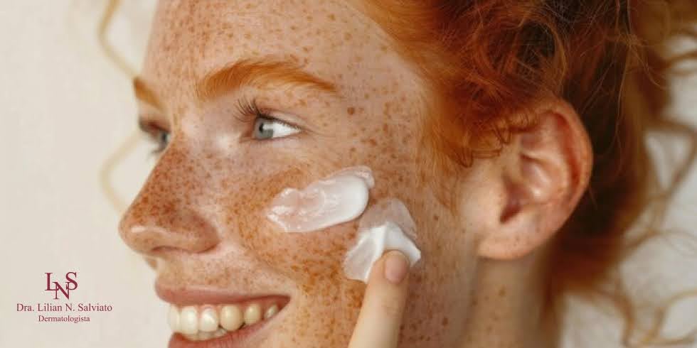 Para quem tem sardas no rosto, o protetor solar com cor é indispensável, pois o pigmento atua como uma barreira física contra a luz visível (aquela emitida por lâmpadas e telas), que também estimula a hiperpigmentação.